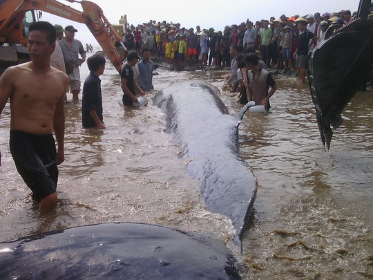 Trước đó, như tin tức đã đưa trên báo Vnexpress, khoảng 4h ngày 25/5, một số người dân cào nghêu trên bãi biển xã Diễn Thịnh (Diễn Châu, Nghệ An) phát hiện con cá voi dài 13 m dạt vào bờ. Con vật còn sống, đuôi quẫy, đầu hướng vào bờ.