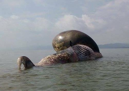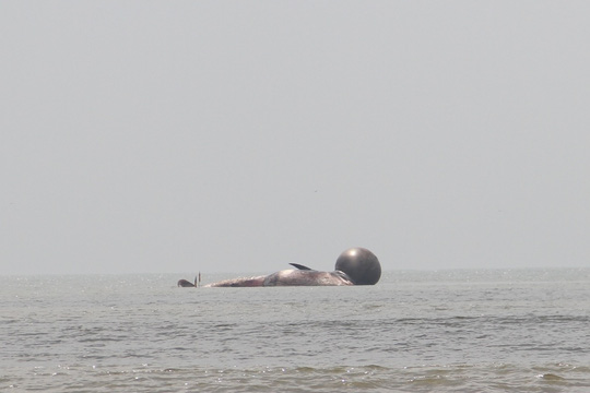 Cá voi khủng chết trôi dạt trên biển - Ảnh: Người lao động |