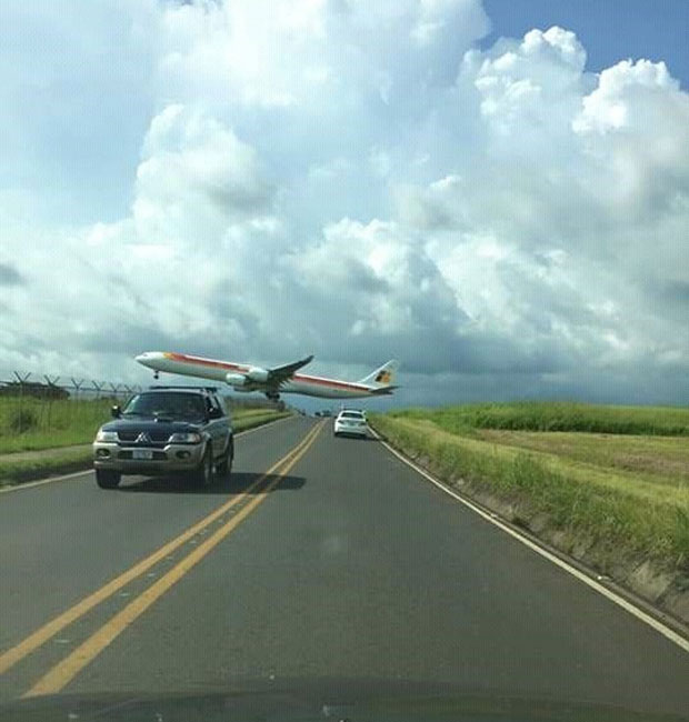 Rất nhiều người chứng kiến cảnh một máy bay chở khách bay sượt qua các phương tiện giao thông dưới mặt đất trước khi hạ cánh đã không tránh khỏi một phen thót tim.