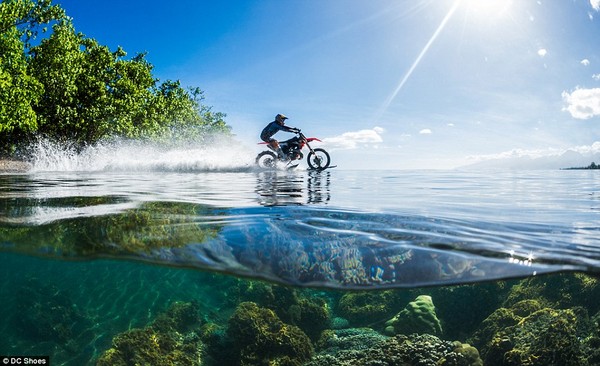 Robbie Maddison chia sẻ rằng anh có ý tưởng lướt xe trên nước khi nhìn người vợ của mình chơi lướt sóng |