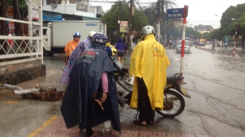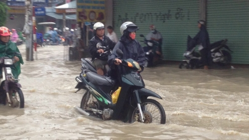 Đến gần 16h cùng ngày những đoạn đường trên vẫn đang ngập nặng, các phương tiện vẫn tiếp tục ì ạch lưu thông vì ngập.