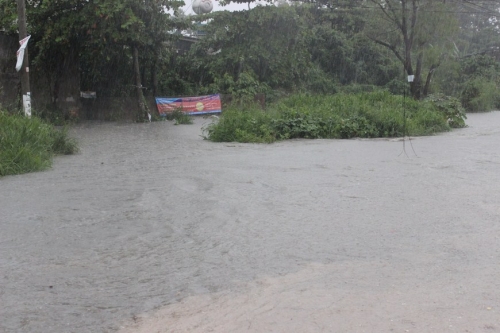 | Cống thoát nước "quá tải" do lượng nước quá nhiều |