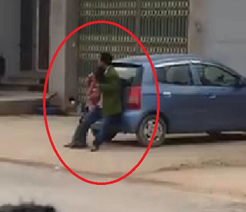 Theo hình ảnh từ clip ghi lại cho thấy, một người đàn ông mặc áo xanh đang khống chế một người phụ nữ, bên ngoài có nhiều người dân đứng xung quanh.