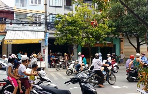 Vào khoảng 8h sáng ngày 29/8, người dân trên đường Trường Thi (TP Thanh Hóa) nhìn thấy nam thanh niên cởi trần leo lên cây sấu trước số nhà 162 ngồi chơi. Sau đó, thanh niên này đã trèo từ cây sấu qua đường dây cáp.[mecloud]CApRPcQgS3[/mecloud]