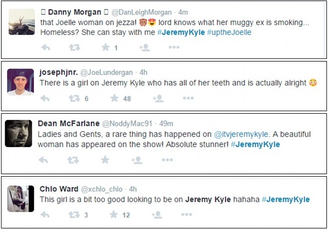 Một người dùng Twitter tên JoeLundergan đã viết: "Có một cô gái trên Jeremy Kyle, tất cả mọi thứ cô ấy có thực sự rất ổn"