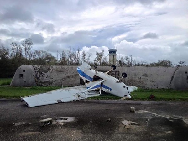 Một chiếc phi cơ bị lật do ảnh hưởng của siêu bão Soudelor |