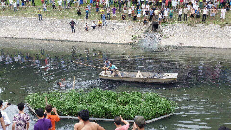 Vào khoảng 12h40 trưa 24/7, những người dân đang sinh sống hai bên bờ sông Tô Lịch thuộc địa bàn phường Yên Hòa, Cầu Giấy (Hà Nội) vô cùng kinh ngạc khi phát hiện một người đàn ông khoảng 40 - 50 tuổi, đầu tóc cắt ngắn, mặc áo kẻ caro, quần cộc bất ngờ nhảy xuống và bơi dọc sông Tô Lịch giữa dòng nước đen ngòm.