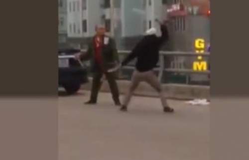 Hình ảnh từ clip cho thấy, nam thanh niên mặc áo đen cầm hung khí chỉ vào mặt một người đàn ông. Sau đó, thanh niên này liên tục hù dọa, dùng hung khí chém về phía người đàn ông đi ô tô. Người đàn ông này trong tay cũng cầm hung khí nhưng chỉ để phòng vệ chứ không tấn công.