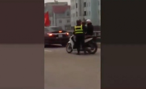 Một lúc sau, xuất hiện một người đàn ông đi xe tới can ngăn. Lực lượng chức năng cũng có mặt ngay sau đó, người đàn ông đi ô tô lúc này đã lên xe bỏ chạy còn người thanh niên hung hãn bị công an giữ lại.