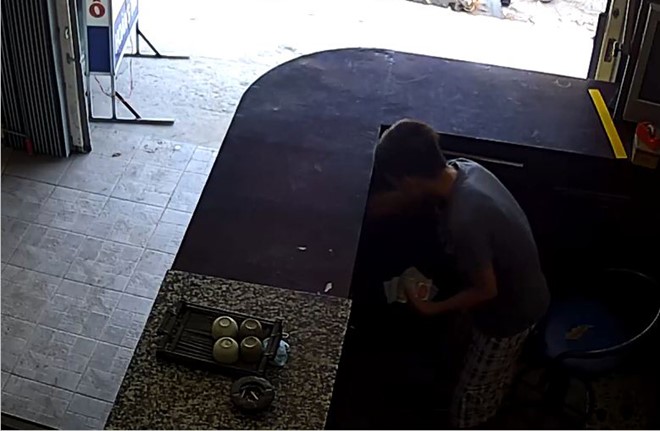 Hành động lấy tiền của D. được ghi lại - Ảnh: Cắt từ camera an ninh |