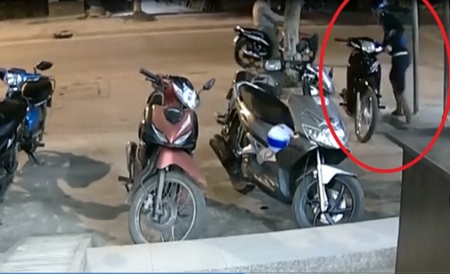 Chỉ bằng một động tác xoay tay nhẹ nhàng, tên trộm đã bẻ khóa thành công chiếc xe máy và nhanh chóng tẩu thoát.