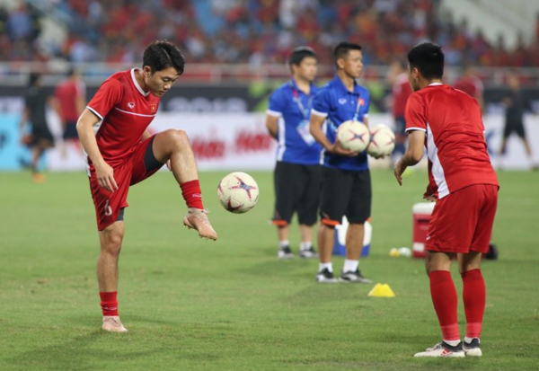 HLV Park Hang Seo gây bất ngờ khi đưa Xuân Trường trở lại tuyến giữa, đá cặp cùng Đức Huy. Đây là thay đổi duy nhất so với trận lượt đi tại Philippines. Trên hàng công, Anh Đức tiếp tục chơi ở vị trí trung phong và hỗ trợ bởi Quang Hải và Văn Đức.