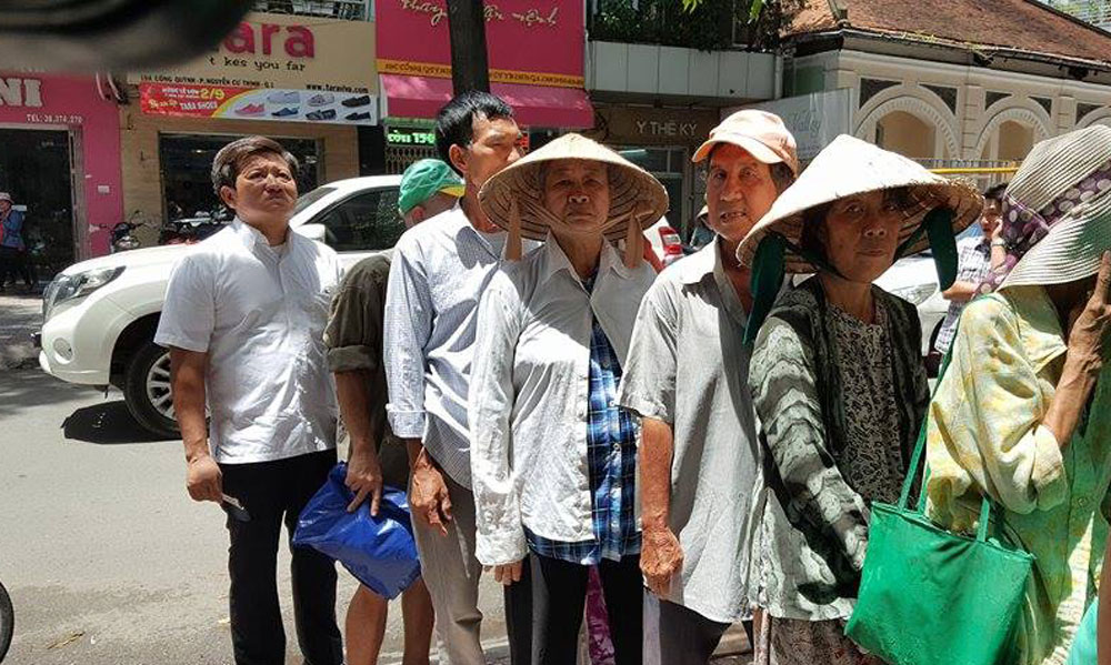 | Ông Đoàn Ngọc Hải cũng xếp hàng cùng người dân đợi ăn cơm 2.000 tại TPHCM. Ảnh: Vietnamnet |