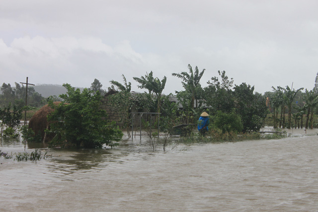 Do mưa lớn kéo dài, một đoạn đê hữu sông Hoàng đoạn qua địa bàn thôn 2, làng Tế Độ, xã Tế Nông, huyện Nông Cống (Thanh Hóa) đã bị vỡ khiến hàng trăm nhà dân bị chìm trong biển nước.