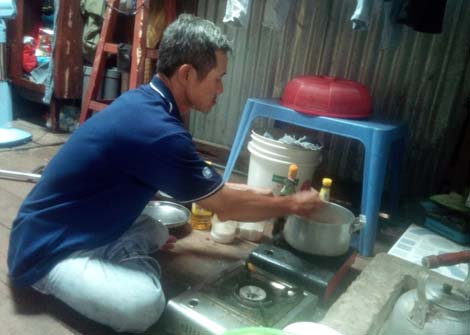 | Bán báo về, ông vào bếp nấu cơm trưa cho các cháu. (Ảnh: Cảnh sát toàn cầu/báo Công an nhân dân). |