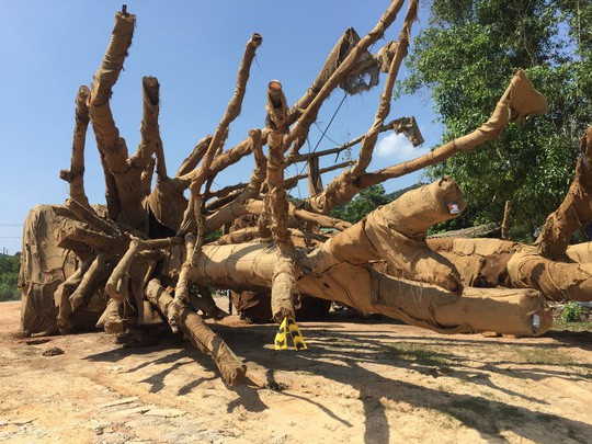 Cây "quái thú" đang bị tạm giữ ở Huế. Ảnh: Người lao động |