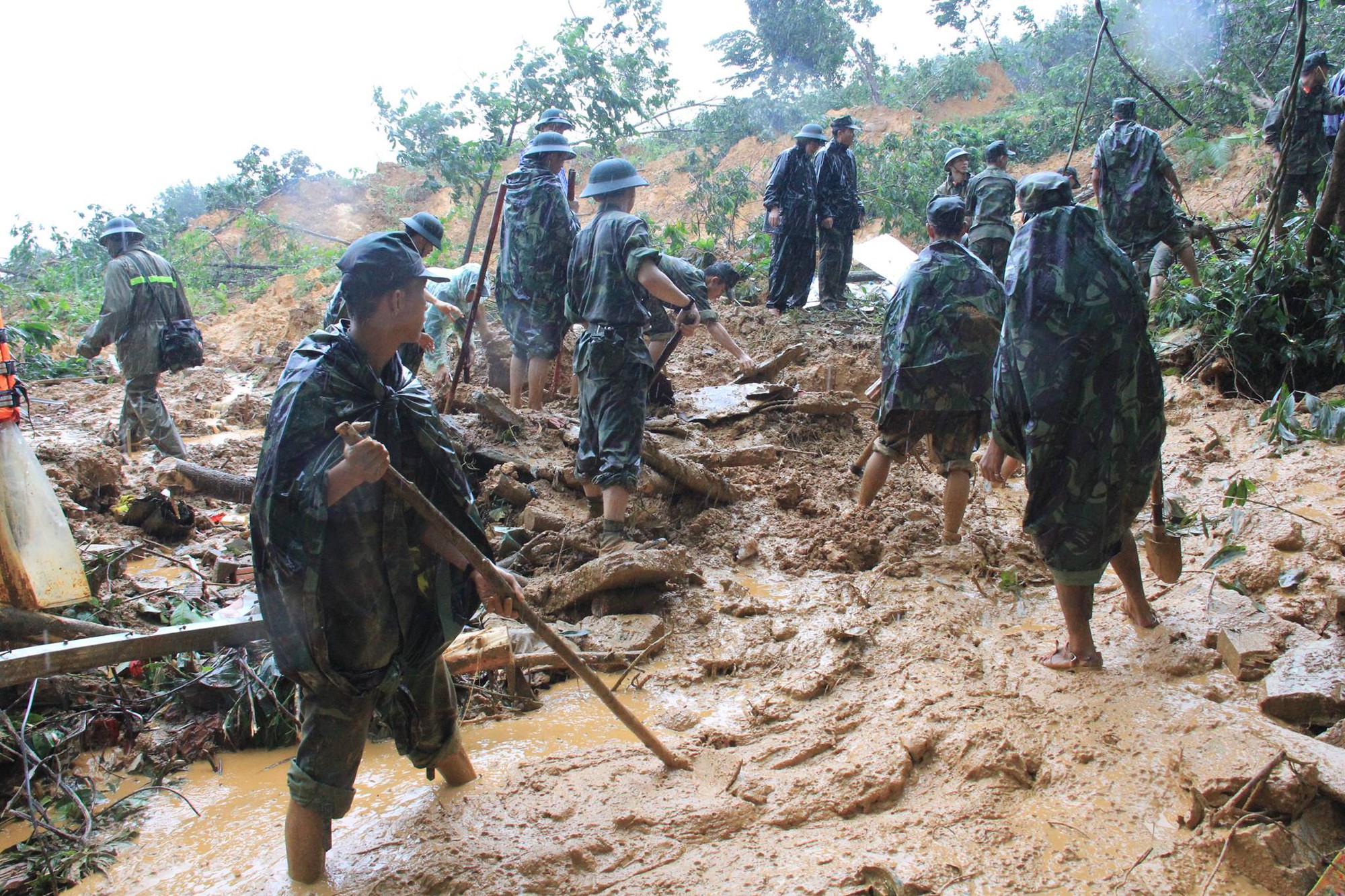 Lực lượng chức năng tìm kiếm 5 nạn nhân bị vùi lấp ở thôn Đàn Bộ, thị trấn Trà My, huyện Bắc Trà My (Quảng Nam) vào sáng ngày 6/11. Ảnh: VNN |