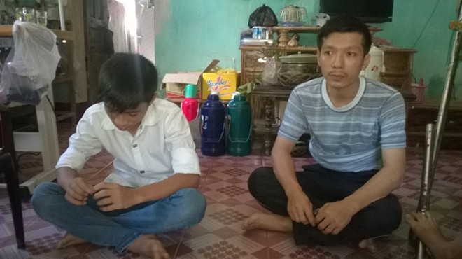 "Sau khi được uống thuốc, cháu liên tục nôn ói, chóng mặt", phụ huynh Toàn (phải) nói.