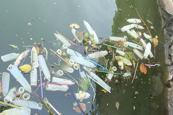 Nhiều bao cao su đã qua sử dụng nổi lềnh phềnh dạt vào vệ hồ. Ảnh: FB |
