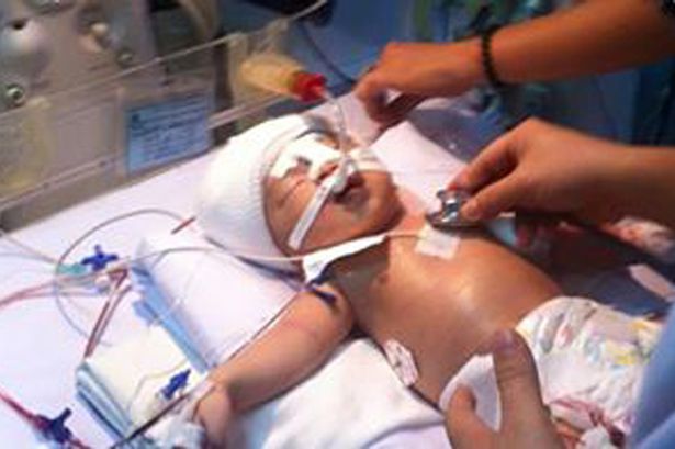 | Bé 11 ngày tuổi đang được điều trị tại Bệnh viện nhi đồng 1 |