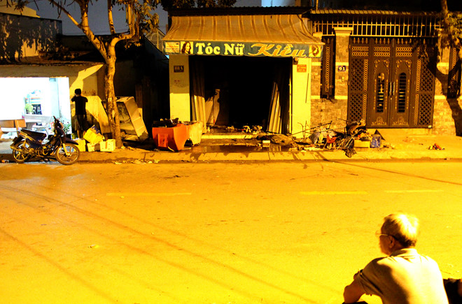 Cánh cửa sau đó được phá, nhưng cả 2 nạn nhân đã thiệt mạng. Căn phòng rộng chừng 16 m2 ngổn ngang đồ đạc và dụng cụ làm tóc bị cháy xém. Phía bên ngoài, người thân chị Oanh như chết lặng, vẻ mặt thất thần, đau khổ.