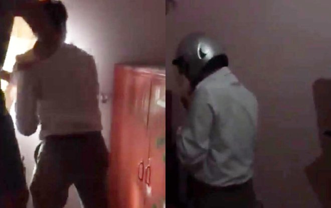 Theo clip dài gần 2 phút, một nhóm người đã xông vào nhà nghỉ nói lớn: "Đây nhá, anh H., thế này là biết rồi nhá. Bật 5 cái máy quay lên".