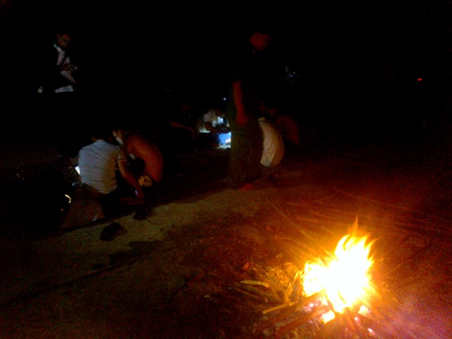 Lực lượng chức năng đốt lửa, chốt chặn đối tượng dưới chân núi Mụ Nhân - Ảnh: Lao động |