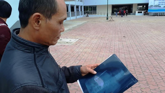 Gần đây, cũng do một tai nạn, ông Nhật đi khám tại Bệnh viện Gang thép Thái Nguyên thì các bác sĩ đã phát hiện trong bụng bệnh nhân có một chiếc kéo dài 15 cm. Theo kết quả siêu âm ngày 25/12, của bệnh viện này, di vật này là một chiếc panh chuyên dùng để mổ của ngành y.