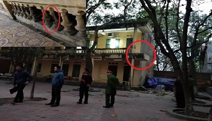 Trước đó, vào đầu giờ chiều 11/12, các cháu học sinh chơi đuổi bắt ở khu vực lan can tầng hai. Cụ thể, có 3 học sinh đuổi bắt 13 học sinh và khi đó, 13 cháu học sinh đã chạy dồn nhau vào khu vực lan can. Do lan can có các tiện bê tông xuống cấp lâu ngày nên sập đổ, khiến các cháu cùng kéo nhau rơi xuống. Sau đó, lập tức được đưa đi cấp cứu.