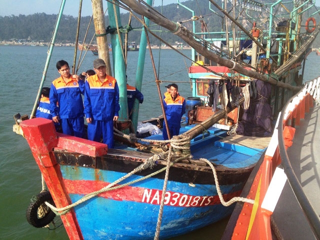 | Lực lượng cứu nạn tiếp cận tàu cá NA 93018 TS. |