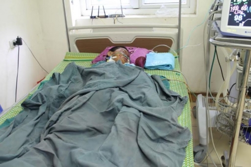 Bé trai 9 tuổi ở Hà Tĩnh dập nát 2 tay đang điều trị tại bệnh viện. Ảnh Anh Thơ/Nguoiduatin |