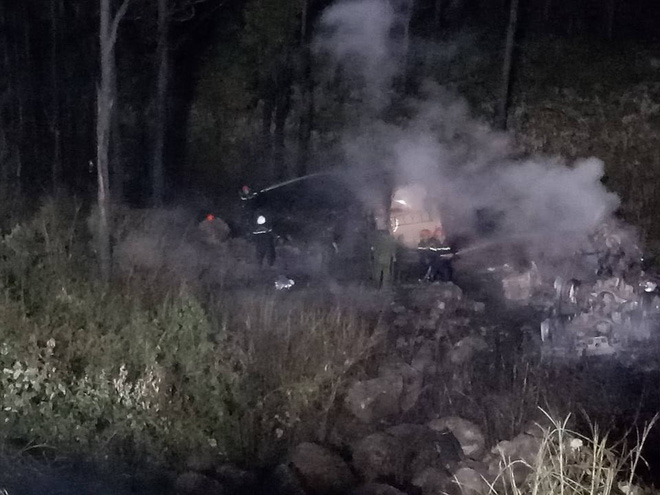 Cú va chạm mạnh khiến xe bồn của tài xế Khanh lao xuống vực, sau đó phát ra tiếng nổ lớn rồi bùng cháy mạnh.