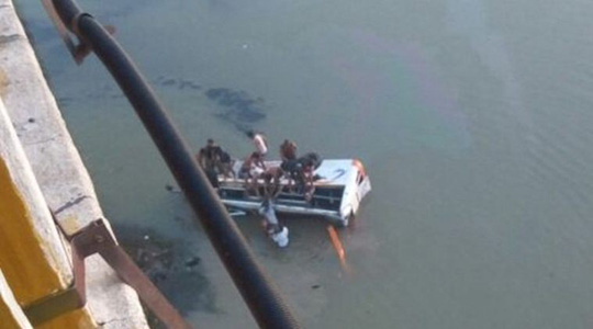 BBC ngày 24/12 cho hay một nguồn tin tại địa phương cho biết tài xế mới 16 tuổi và chiếc xe đã gặp nạn khi bị mất kiểm soát tông vào thành cầu và lao xuống sông Banas từ độ cao 30m.