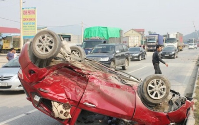 Vụ tai nạn ô tô đầu kéo tông liên hoàn khiến 7 người trong 2 chiếc xe ô tô con phải nhập viện cấp cứu, 2 chiếc ô tô con hư hỏng nặng.