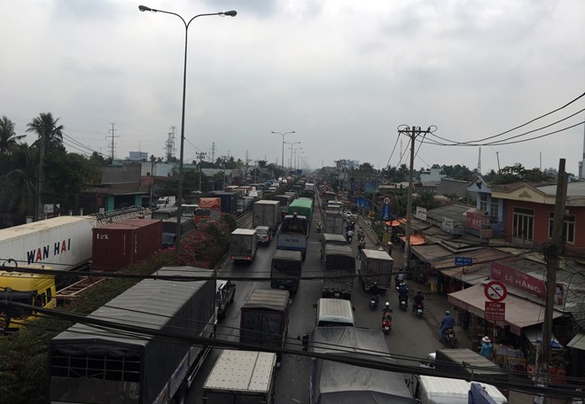 Khi đến gần giao lộ QL1- Vườn Lài, xe ô tô 7 chỗ bất ngờ va chạm với xe container chạy cùng chiều. Cú va chạm đã khiến hai chiếc xe bị hư hỏng, nằm chắn ngang QL1. Vụ tai nạn đã khiến giao thông qua khu vực bị ùn tắc hàng km.