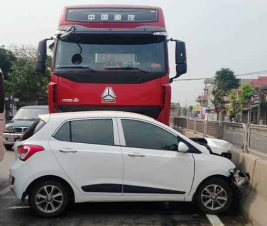 Khi đến đoạn xã Diễn Hồng, huyện Diễn Châu, xe 4 chỗ bị xe đầu kéo mang BKS 37R. 007.68 (chưa rõ danh tính tài xế) đang chạy cùng chiều tông trúng và đẩy đi khoảng 30 m.