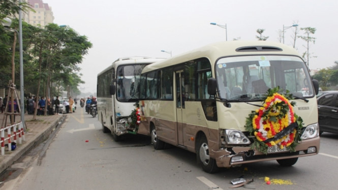 Khoảng 8h sáng cùng ngày, xe khách 24 chỗ được thuê đưa tang đi trên đường Võ Chí Công (Hà Nội) theo hướng cầu Nhật Tân. Khi đến gần ngã tư Nguyễn Hoàng Tôn, xe 24 chỗ bất ngờ va chạm với một xe khách 16 chỗ, rồi tiếp tục lao về phía trước đâm vào 1 chiếc taxi và 1 xe máy lưu thông cùng chiều.