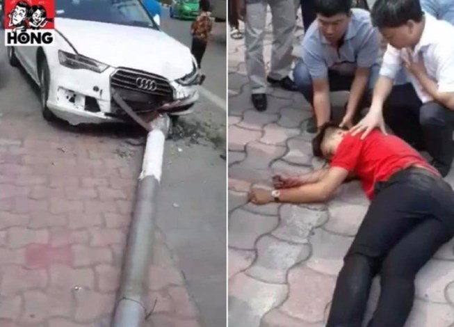 Chiếc cột điện đổ trúng một nam thanh niên đang đi trên vỉa hè, khiến người này bị thương nặng vùng đầu. Ngay sau đó, lái xe ô tô Audi rời khỏi hiện trường vụ tai nạn. Nạn nhân được đưa vào bệnh viện cấp cứu.