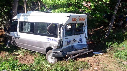 Vào thời điểm trên, xe khách mang BKS: 77H-8449, do tài xế Nguyễn Mới, 46 tuổi ở xã Hoài Thanh Tây, huyện Hoài Nhơn điều khiển chạy tuyến Hoài Nhơn- Quy Nhơn, khi đến đoạn đường phía Bắc cầu Bồng Sơn đã bị xe container BKS 43C-067.34 kéo theo thùng hàng loại 40 feet lưu thông cùng chiều phía sau tông mạnh vào.