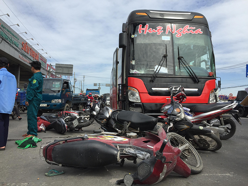 “Nghe tiếng rầm rầm, tôi nhìn lại thì thấy xe khách tông xe tải rồi đâm hàng loạt xe máy. Khi ấy, tôi chỉ kịp bế con trai tháo chạy. Cảnh tượng lúc đó rất hỗn loạn”, một nhân chứng thuật lại. Nhận tin báo, công an quận Bình Tân có mặt lập biên bản, ghi nhận vụ việc.