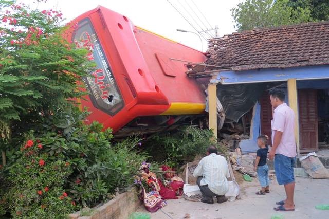 Được biết, xe khách mang biển số Đắk Lắk của nhà xe Tân Quý do tài xế Phùng Quốc Lâm điều khiển chở 44 hành khách chạy hướng Nam – Bắc. Chiếc xe lật nghiêng và đè sâp nhà ông Nguyễn Văn Hai (76 tuổi) khiến ông bị thương nặng ở vùng đầu. Vụ tai nạn còn làm tài xế Lâm và 3 hành khách trên xe bị thương nặng.