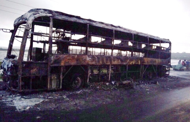 Chiếc xe khách giường nằm đã bị cháy rụi. Ảnh: A.S |