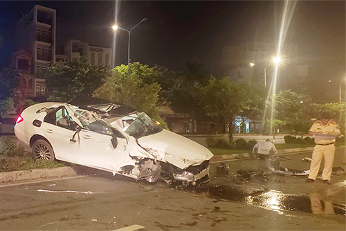 Tại hiện trường, ôtô sang vỡ nát, biến dạng nhiều vị trí. Trong phạm vi 20 m2, nhiều vật dụng, xăng dầu vương vãi.