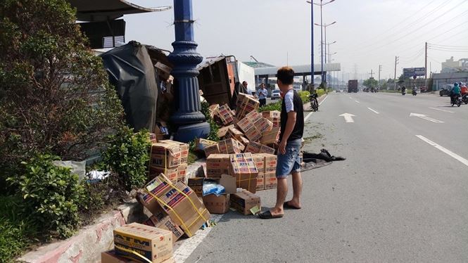 Thanh niên đưa tin, khoảng 8 giờ ngày 20.5, xe tải BS 60C-216.38 chở hàng lưu thông trên Xa lộ Hà Nội hướng từ ngã tư Thủ Đức về Q.2 (TP.HCM). Khi xe vừa qua trạm thu phí Rạch Chiếc (P.Trường Thọ, Q.Thủ Đức) thì bất ngờ lao lên dải phân cách, lật nhào.