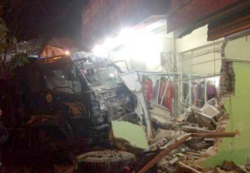 Chiếc xe tải đang lưu thông đột ngột mất lái đâm liên hoàn vào 7 nhà dân, khiến 1 người chết tại chỗ, ít nhất 4 người bị thương nặng.
