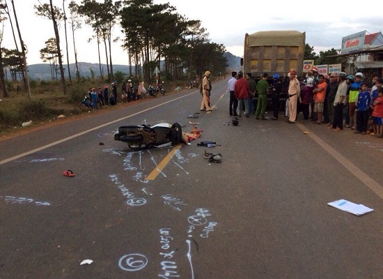 Khi xe chạy tới đoạn đường trên, xe tải vượt chiếc xe ô tô đang lưu thông cùng chiều, không may đã tông vào xe máy mang BKS:47-U1: 044.44 do anh Phan Viết Cường (21, ngụ huyện Ea H’leo) điều khiển chở theo anh Trần Văn Chung (ngụ tỉnh Bình Định) đang lưu thông cùng chiều phía trước.