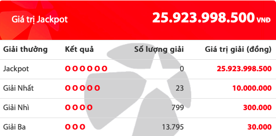 Theo như quy định, do do kỳ quay 462 đã không tìm ra chủ nhân của giải độc đắc nên số tiền hơn 25 tỷ đồng sẽ được cộng dồn vào kì quay thưởng tiếp theo. Nếu cộng thêm Doanh thu bán vé, chủ nhân giải Jackpot trong kỳ quay thưởng 463 có thể nhận được số tiền hơn 27 tỷ đồng.
