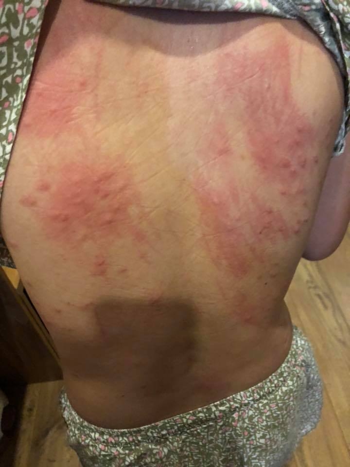 Tài khoản FB Bình Nguyễn cho biết, làn da mẩn ngứa nghiêm trọng kéo dài sau khi tắm biển tại Đà Nẵng. |