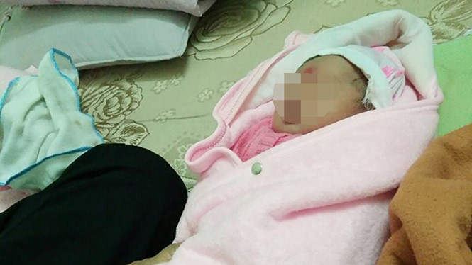 Một bé gái sơ sinh bị bỏ rơi trước cổng chùa ở thị xã Đông Triều, tỉnh Quảng Ninh kèm một tờ giấy với nội dung nhờ gửi sư thầy nuôi giúp con.