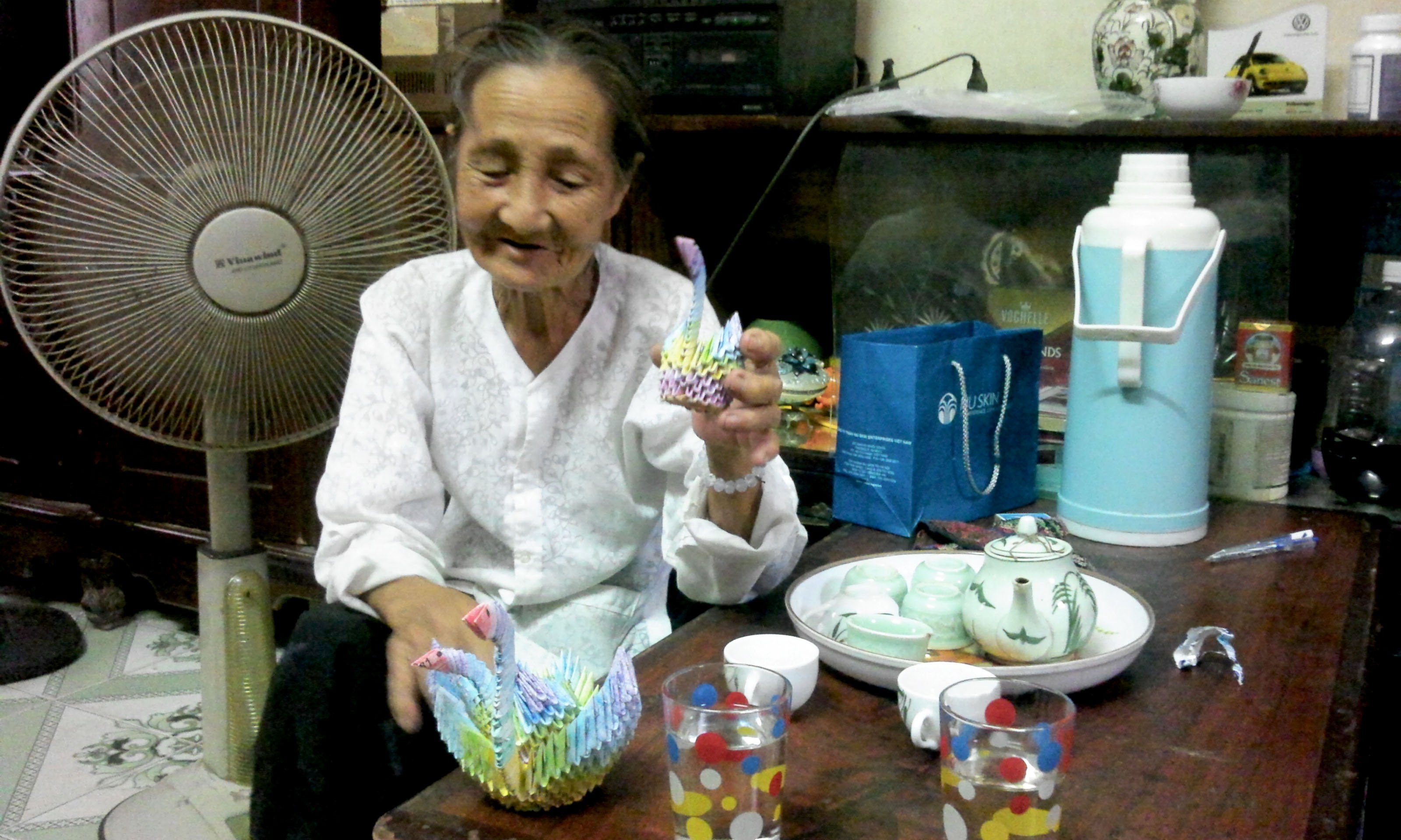 Trên khuôn mặt nhăn nheo của bà Liên, không giấu nổi đôi mắt đượm buồn. Bà tâm sự “Từ khi bố nó mất, nó đâm ra tự kỉ, không giao tiếp gì với những người xung quanh. Mẹ nó thì bỏ đi từ khi bố nó còn sống. Có hôm nó cứ lặng lẽ ngồi tỉ mỉ gấp hạc rồi thêu tranh, ai hỏi gì cũng chỉ im lặng”.